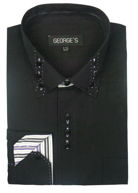 The AH608-BLK shirt by George's is a perfect blend of elegance and sophistication. This stylish black shirt is designed for those who appreciate a refined look while prioritizing comfort. Made from high-quality fabric, it assures durability and ease of wear, making it ideal for various occasions from casual outings to formal events.