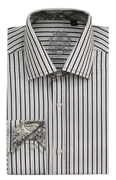 The AH612-WH shirt combines classic design with modern elegance. Its striking striped pattern is perfect for both casual and formal settings. Crafted from high-quality fabric, this shirt is not only stylish but also comfortable for all-day wear. The unique detailing on the cuffs adds a touch of sophistication, making it a versatile piece for your wardrobe.