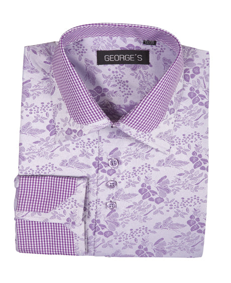 Introducing the AH622-LAV shirt from George's, a must-have addition to your wardrobe. Designed for both style and comfort, this shirt features a captivating lavender background adorned with subtle botanical prints that exude a relaxed sophistication.
