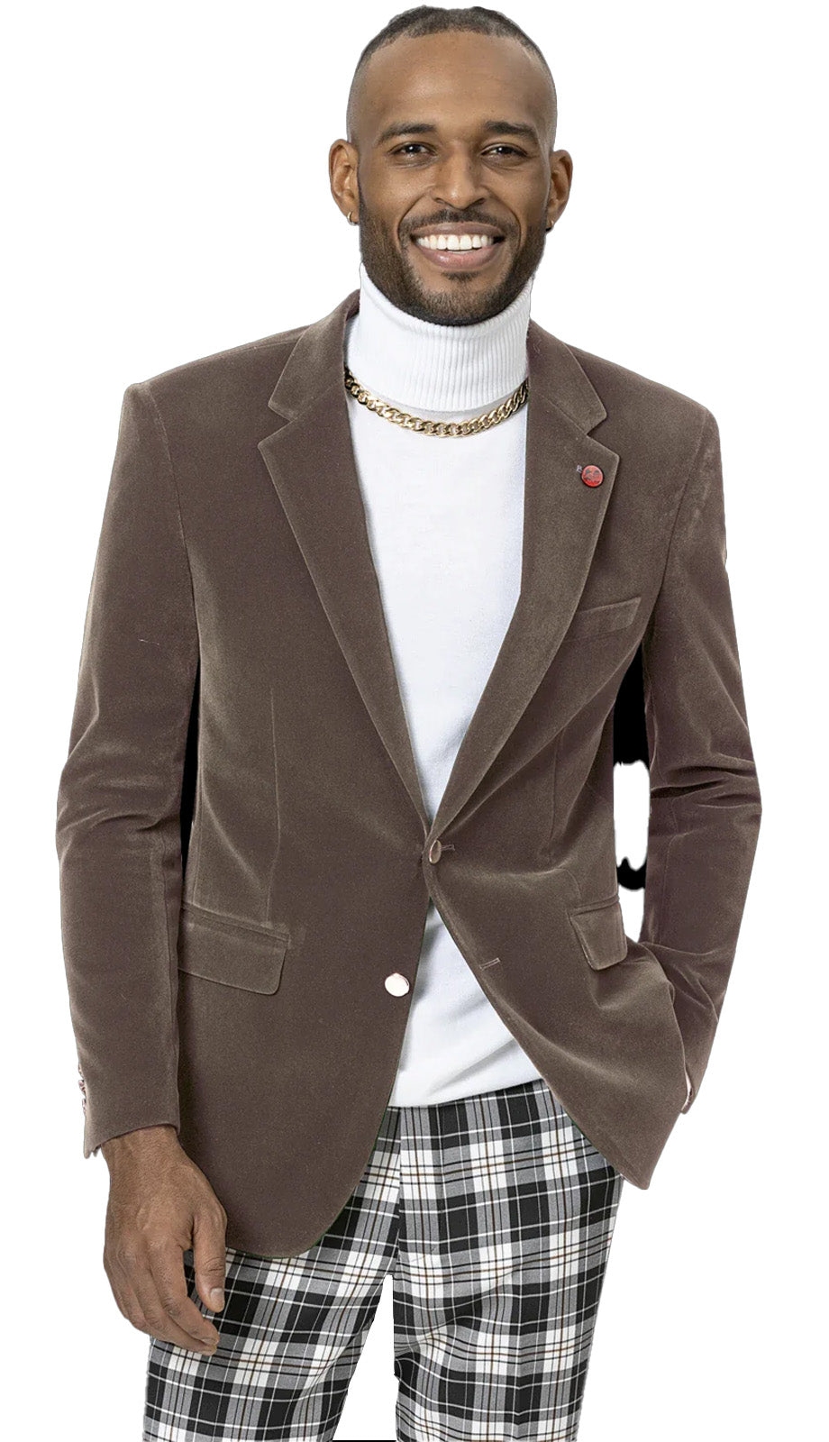 The EJ Samuel J134-TA is a stylish one-piece two-button solid velvet blazer designed for the modern man. Made with high-quality velvet fabric, this blazer offers a soft touch and luxurious appearance, making it perfect for various occasions, from formal events to smart casual outings.