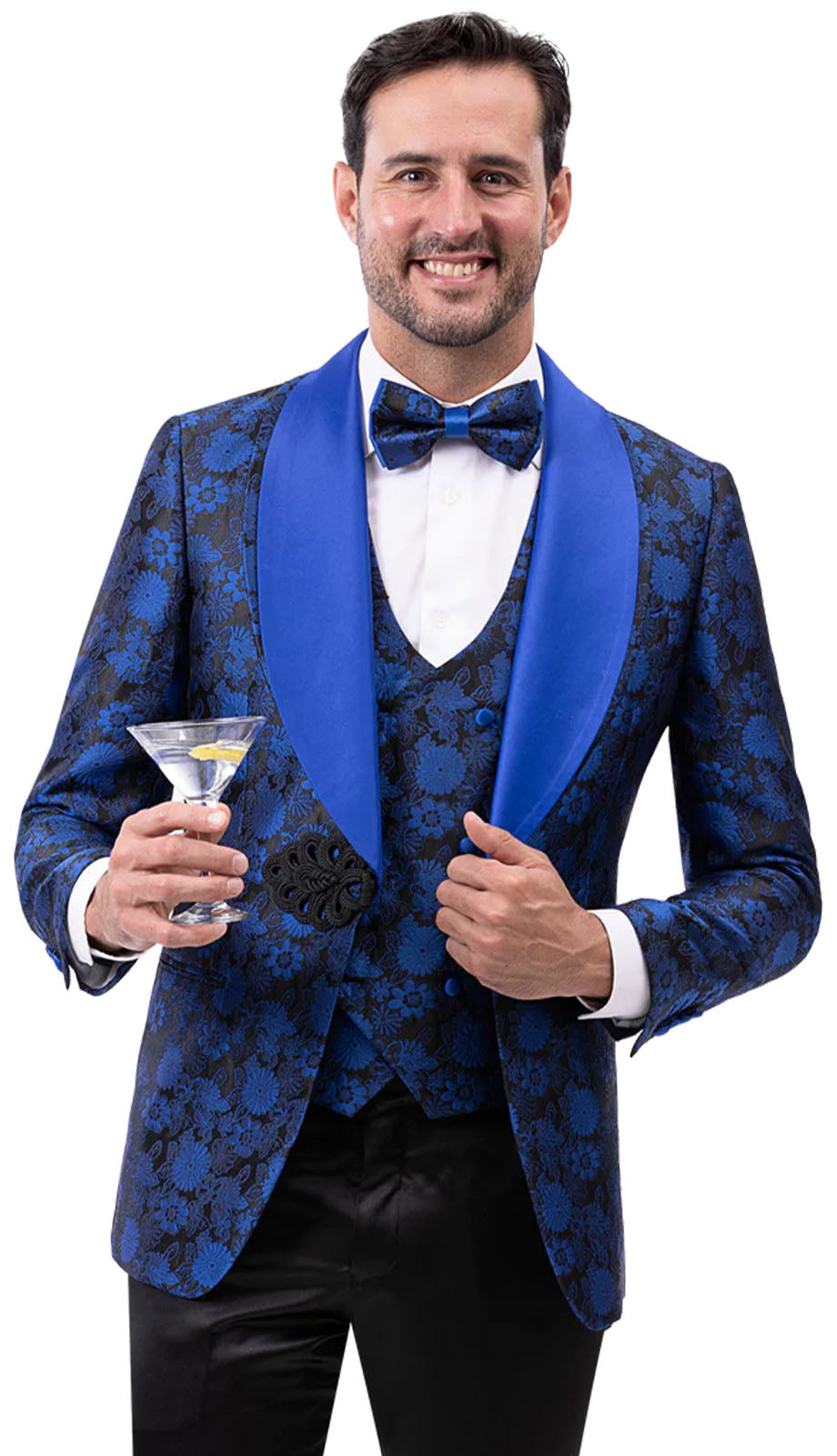 The EJ Samuel J189 Fashion Blazer is the perfect statement piece for any formal occasion. Made from high-quality materials, it boasts a striking blue floral pattern against a classic black backdrop, combining elegance and modern style to make you stand out in a crowd.