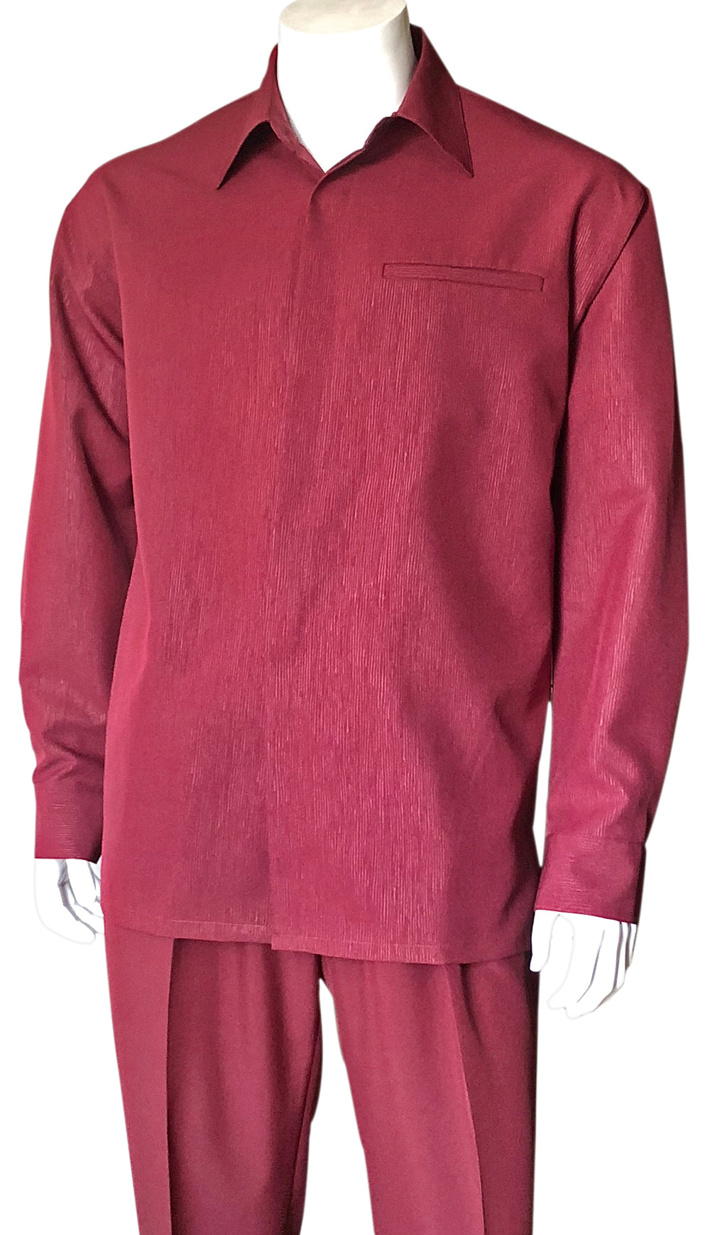 The Mens Walking Suit-2764-BU is designed for the modern man seeking style and comfort. This two-piece set features solid pants paired with a subtly patterned shirt, making it perfect for a variety of occasions, be it casual outings or semi-formal events. The rich color and unique texture of the fabric not only enhance the overall appearance but also provide a sophisticated touch that sets it apart from ordinary suits.