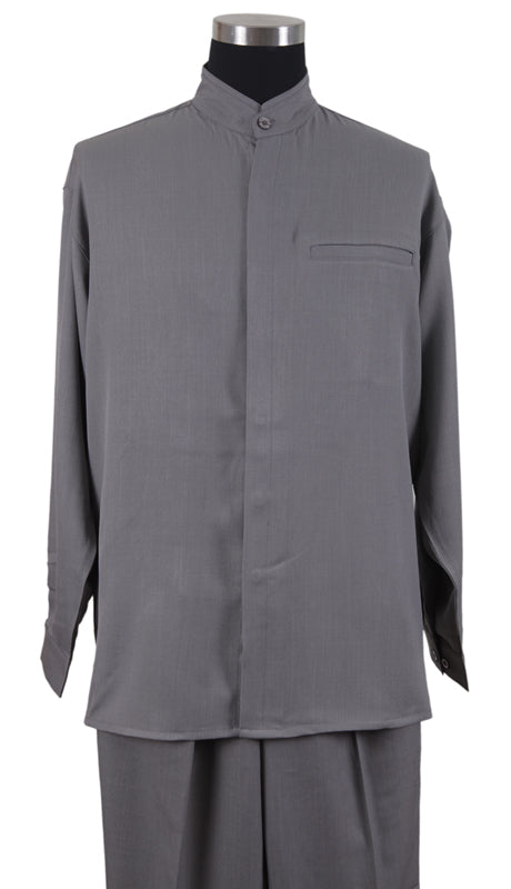 The Mens Walking Suit 2826-GR is an ideal choice for those who value style and comfort in their wardrobe. This two-piece suit consists of a solid shirt and matching pants, making it easy to dress for various occasions, from casual outings to formal events.