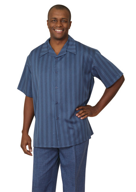 The Mens Walking Suit 2945-NA is designed for comfort and style, featuring a classic short sleeve striped shirt paired with textured pants. This versatile outfit is an excellent choice for various occasions, from casual outings to informal gatherings with friends and family.