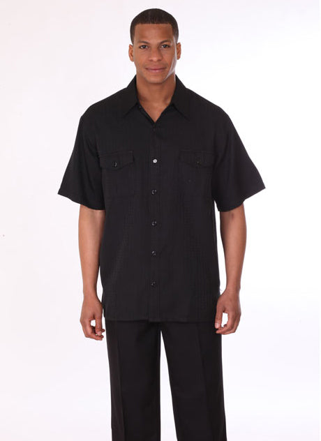 The Mens Walking Suit 2949-BLK is designed for the modern man who values both style and comfort. This two-piece ensemble features a smart short sleeve shirt crafted from high-quality materials, ensuring breathability and ease of movement. The classic black color adds versatility to your wardrobe, making it suitable for a variety of occasions, from relaxed gatherings to casual outings.