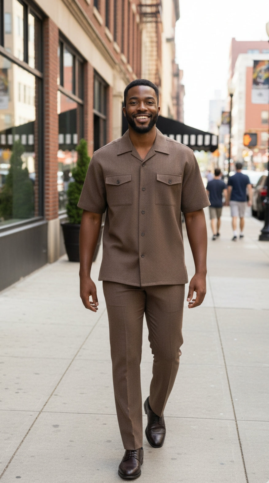 The Mens Walking Suit 2961-BR is designed for those who appreciate both style and comfort. This two-piece outfit features a solid pant and matching shirt, making it the perfect ensemble for leisurely strolls or casual gatherings. The fabric is carefully chosen to provide breathability while ensuring durability, allowing you to enjoy this suit for years to come.