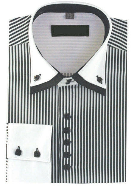 The Shirt606-BL is the perfect addition to any wardrobe, combining style and comfort effortlessly. Featuring a striking black and white striped design, this shirt makes a bold statement while remaining versatile for various occasions. Whether you are heading to the office or attending a casual event, this shirt is designed to elevate your look.